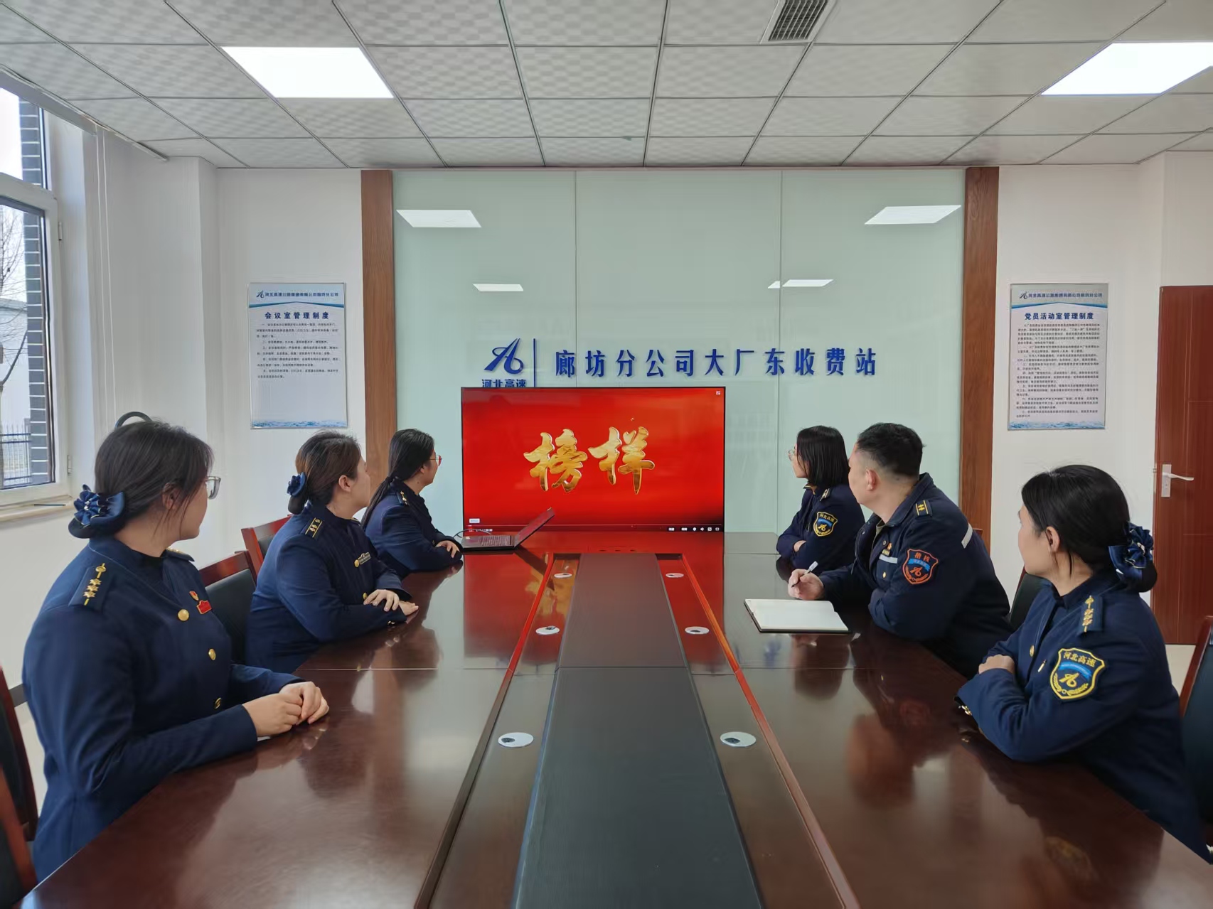 为深入学习贯彻习近平新时代中国特色社会主义思想和党的二十届四中全会精神,充分发挥先进典型示范引领作用,1月22日,大厂东收费站党支部根据廊坊分公司党委统一部署,积极组织全体在站党员干部职工认真收看学习了《榜样10》专题节目,引导收费站党员干部职工对标先进、见贤思齐,凝聚起奋进新征程的磅礴力量。