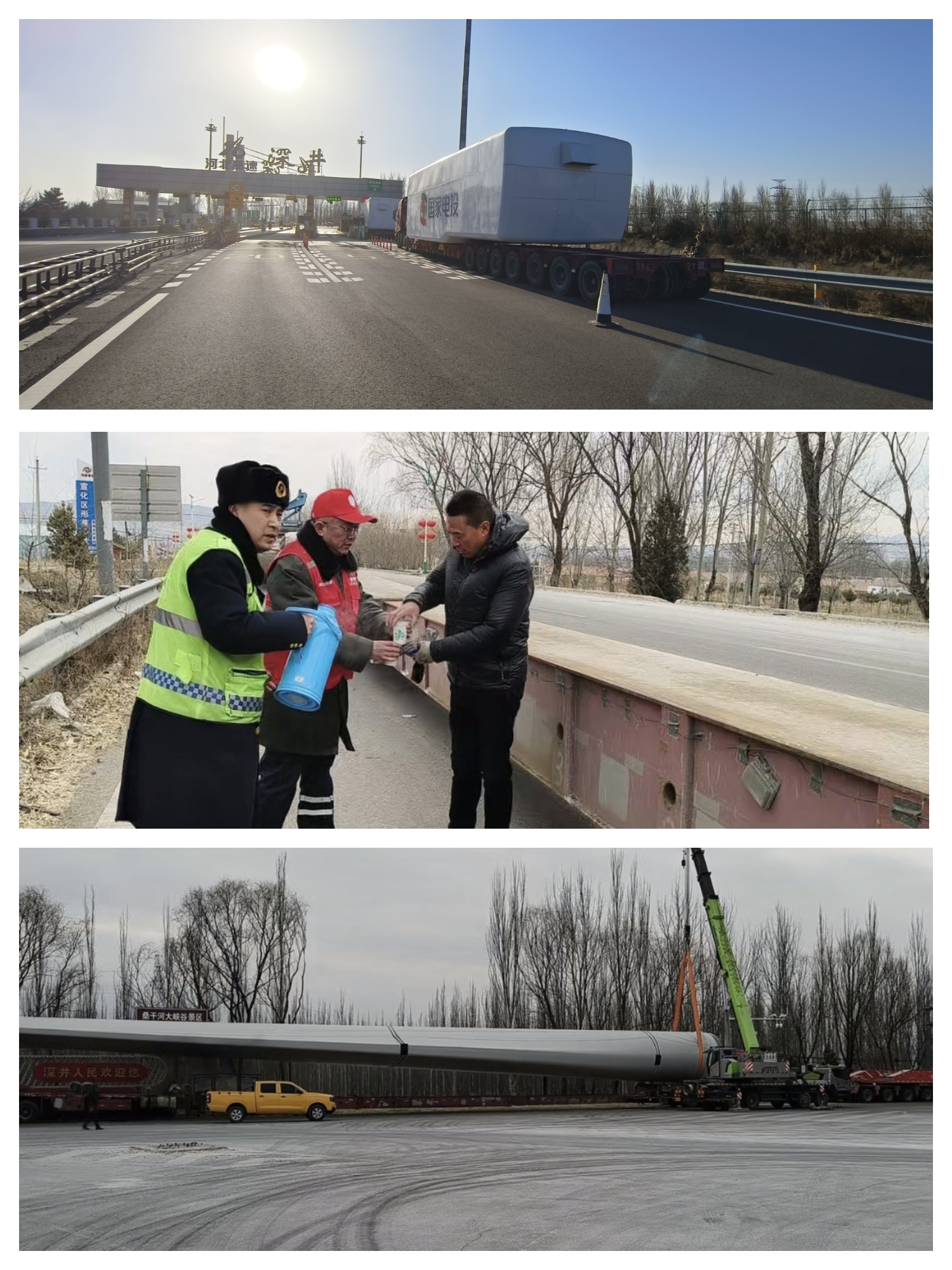 连日来,多辆运载大型风电设备的大件运输车辆驶入深井收费站,因车辆体型庞大、通行需求特殊,给收费站通行秩序带来挑战。宣大分公司深井站提前预判、精准施策,以专业服务与暖心举措,为大件运输车辆开辟“绿色通道”,保障运输任务高效顺畅。