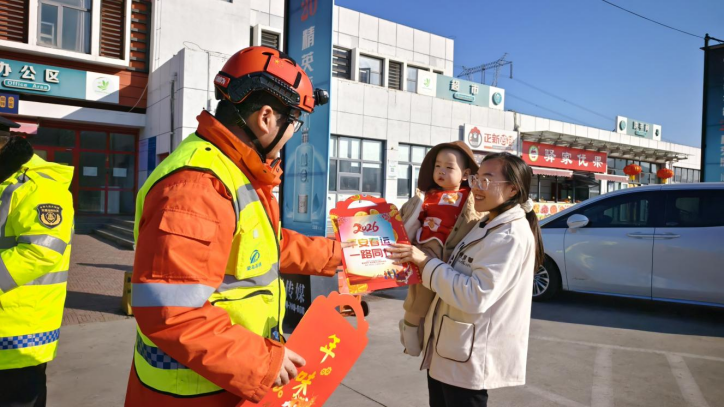 2月2日上午,廊坊分公司香河保通保畅应急大队联合辖区交警、路政、养护、服务区等多部门,在香河服务区南区共同举办了2026年春运启动仪式。参与各方一致表示,春运是关乎群众出行安全与社会和谐稳定的重要民生工程,必须凝聚各方合力,构建“各司其职、协同作战、无缝衔接”的保障机制。现场通过设置宣传咨询台、发放安全手册、展示事故案例、答疑交流等形式,向司乘人员普及安全出行与应急知识,并围绕联动响应、信息共享、应急处置等内容进一步优化预案,强化协同作战能力。