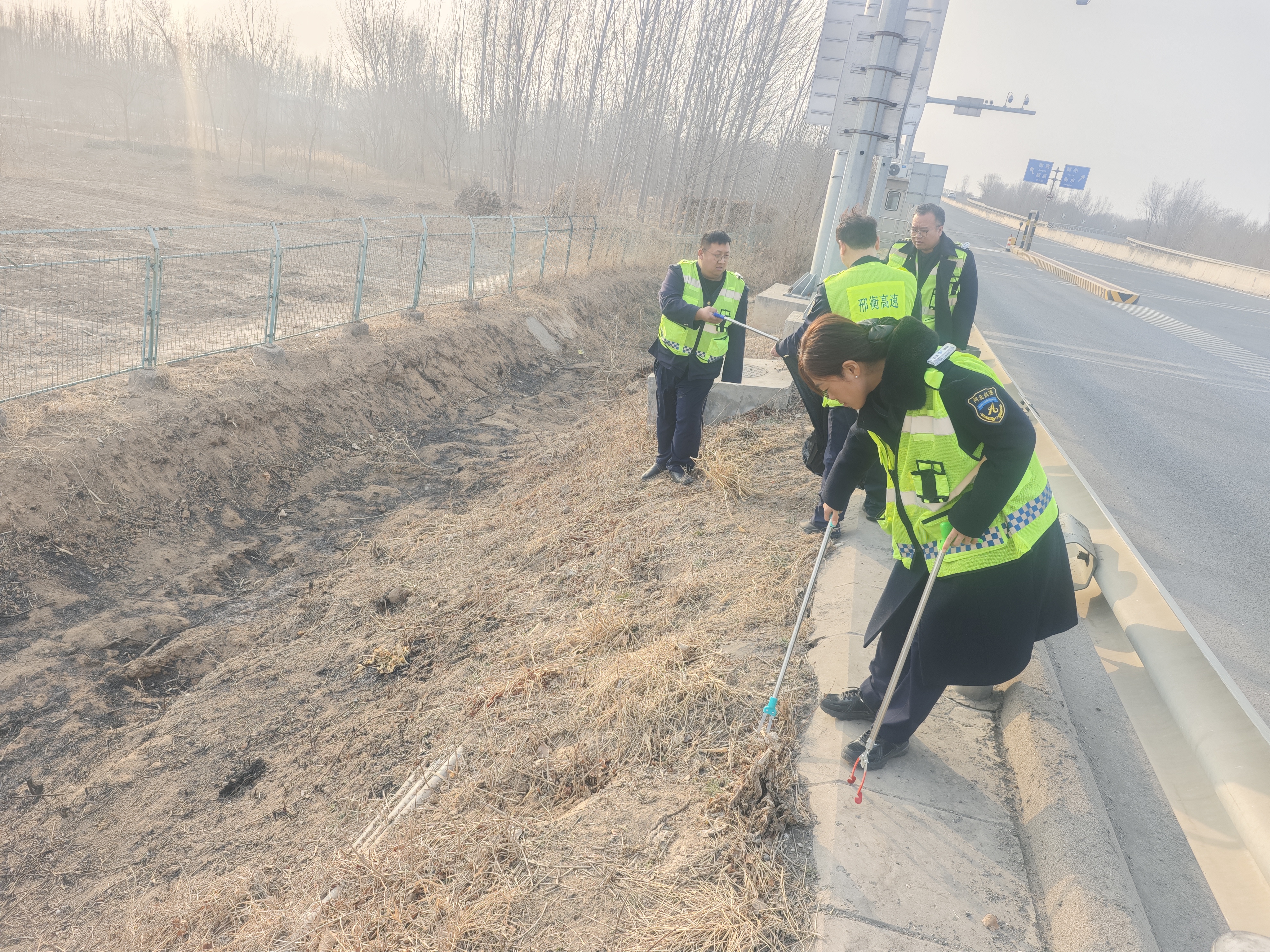 行动开始后,收费人员携带铁锹、扫帚及垃圾袋等工具共同作业,系统清理塑料瓶、废纸等散落垃圾,铲除枯枝败叶与沉积淤泥,分类装袋后统一清运。针对边沟拐角、杂草丛生处等卫生死角,大家进行了全面排查与深度清扫,并同步整治外围散落杂物,确保实现“垃圾无残留、环境无死角”的清理标准。