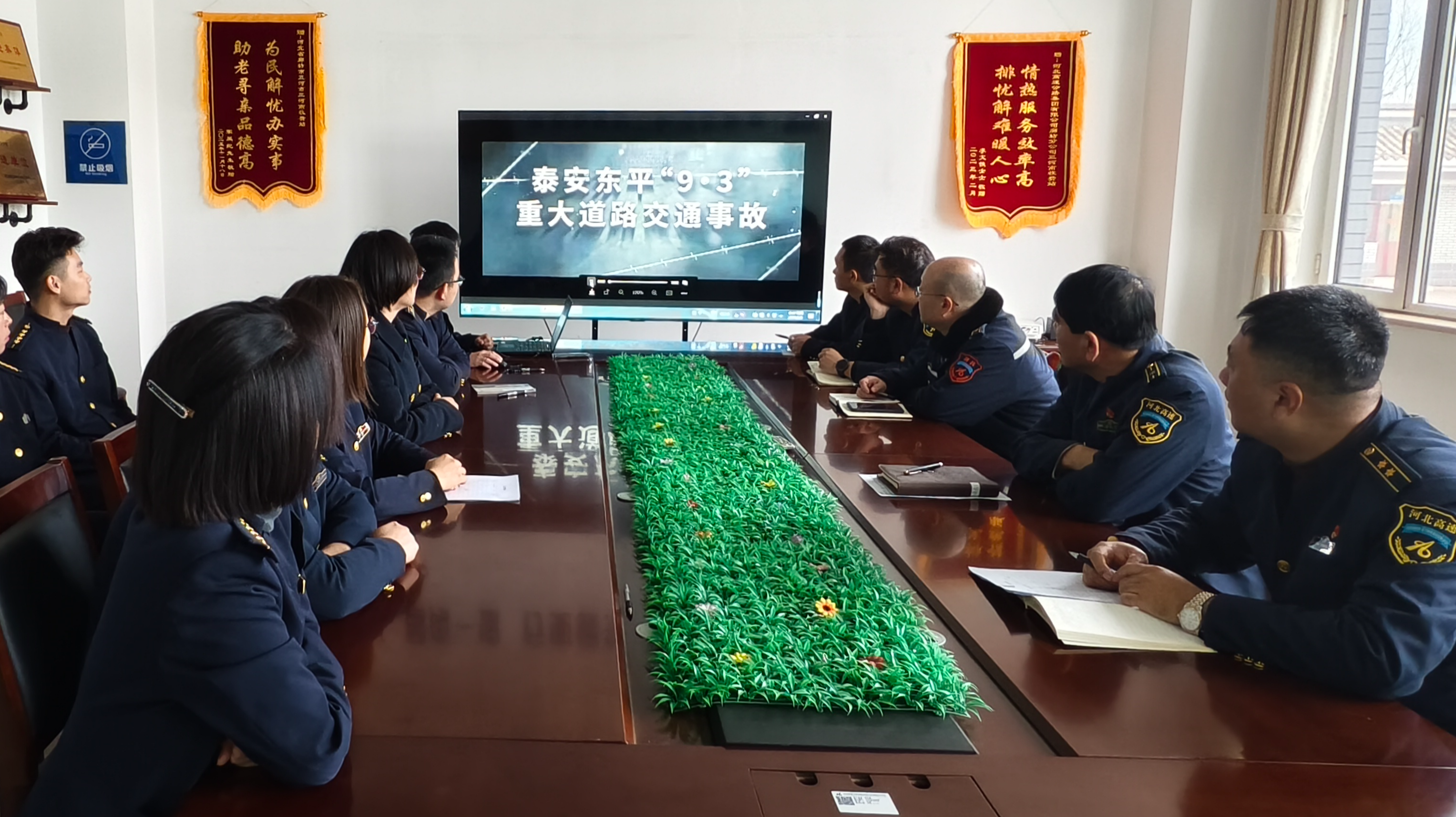 观影结束后,收费站负责人结合春运车流激增特点及节日期间安全风险防控重点,就统筹推进安全生产专项行动、抓实春运保畅工作提出明确要求,一是提高政治站位,扛牢主体责任,将安全专项行动贯穿春运保畅全过程、各环节,做到守土有责、守土负责、守土尽责;二是聚焦关键领域,深化隐患整治,紧盯收费车道、设备机房、地源热泵房等重点区域,从严排查、从严整改、从严管控,建立闭环管理机制,确保隐患动态清零;三是强化应急值守,提升处置能力,完善保畅预案、加强实战演练、畅通联络渠道,做到反应迅速、处置果断、保障有力,全力确保站口通行顺畅。