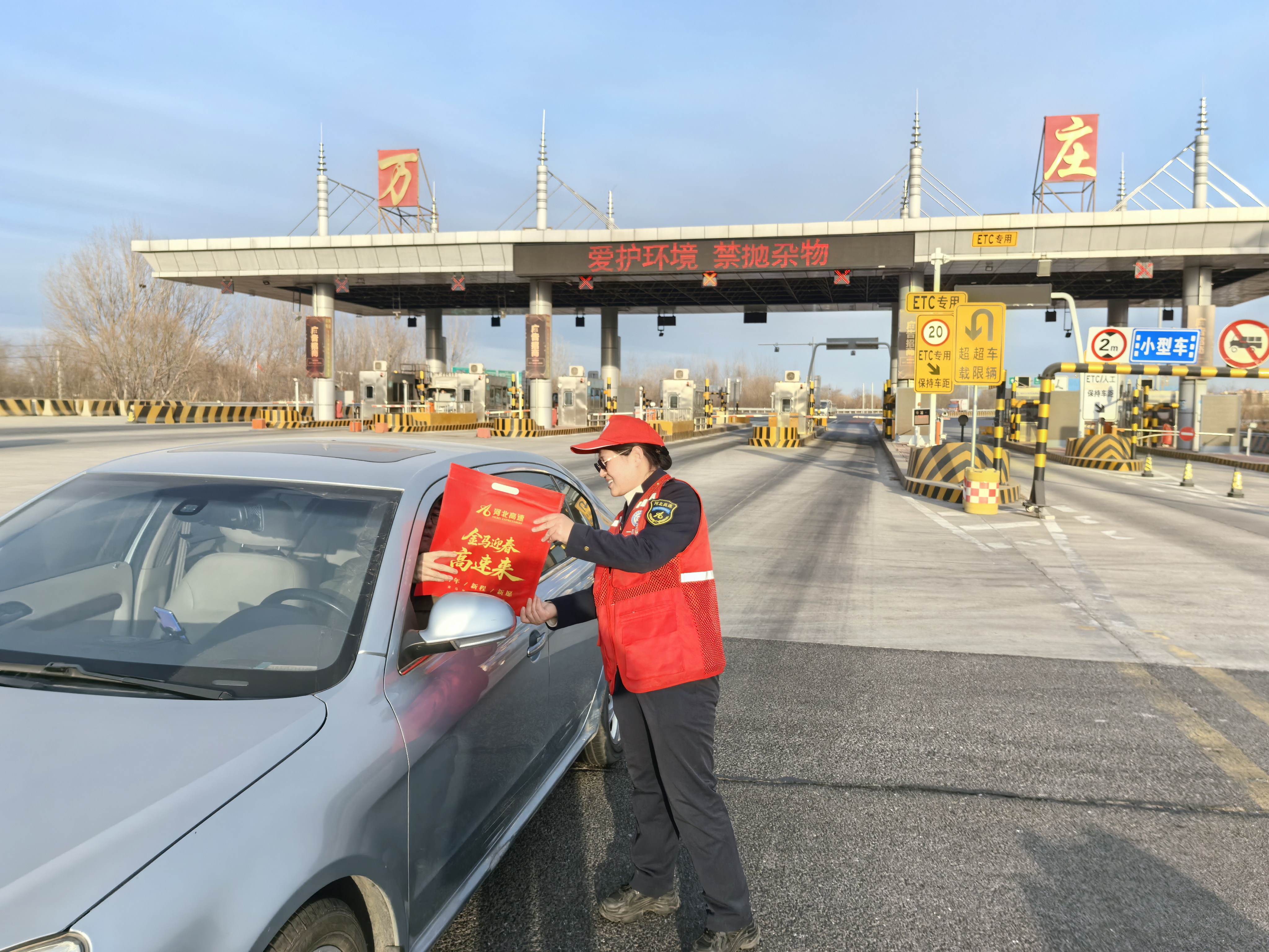 为营造欢乐祥和的节日氛围,切实保障春运期间道路安全畅通,2月6日下午,万庄收费站组织开展“新春送祝福”活动,向过往的司乘人员传递浓浓的节日问候和美好祝愿。