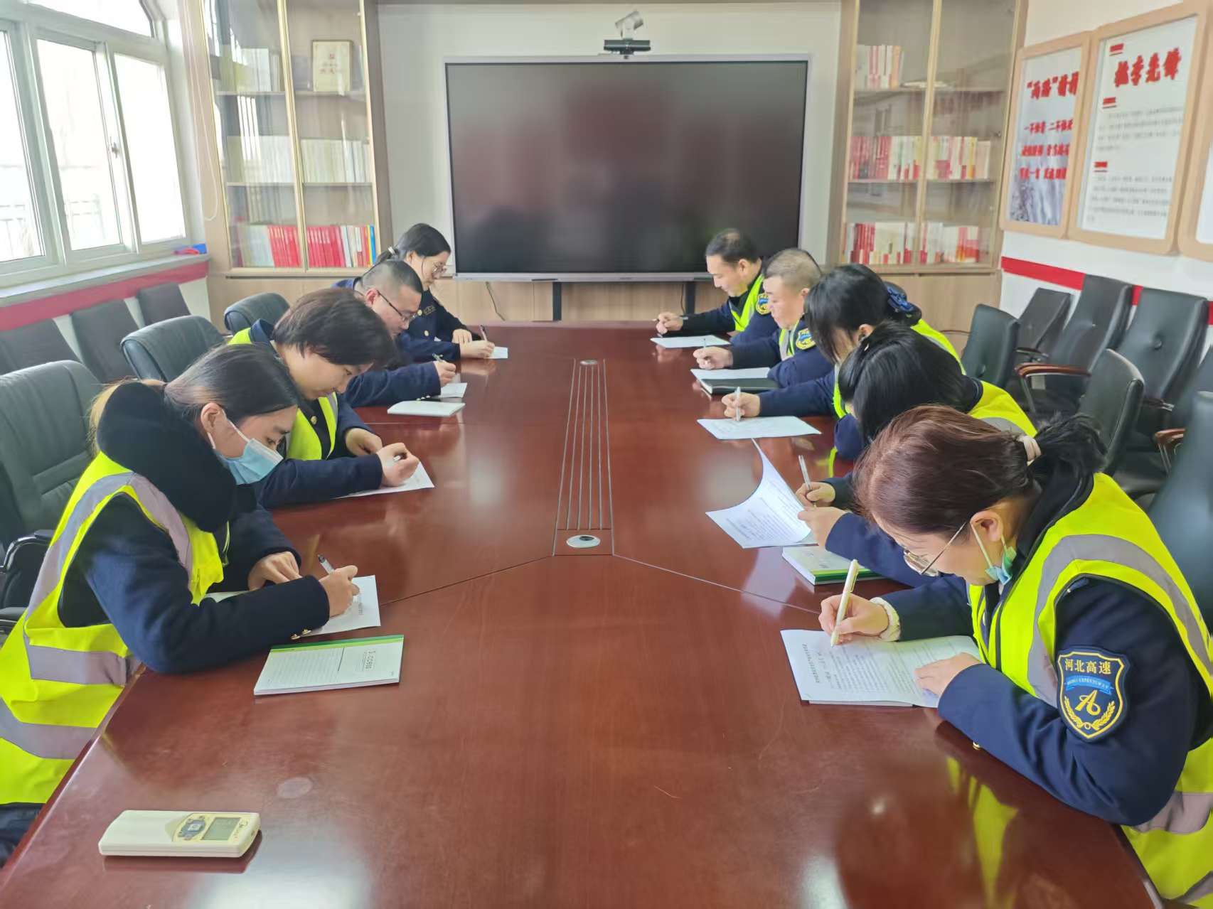 本次考试立足收费站收费服务、保通保畅、日常运维等核心工作场景,精准聚焦安全生产重点内容,既涵盖《中华人民共和国安全生产法》、《河北省安全生产条例》、生产安全事故、突发事件信息报告相关规定与流程、全员安全生产责任清单与履职清单,又聚焦消防用电规范、恶劣天气处置、危险品车辆查验等实操“关键项”。考试采用闭卷形式,监考人员严格履职,全体职工沉着思考、认真作答,考场秩序井然,充分展现了深州收费站职工严谨务实的工作作风和扎实的安全知识功底。