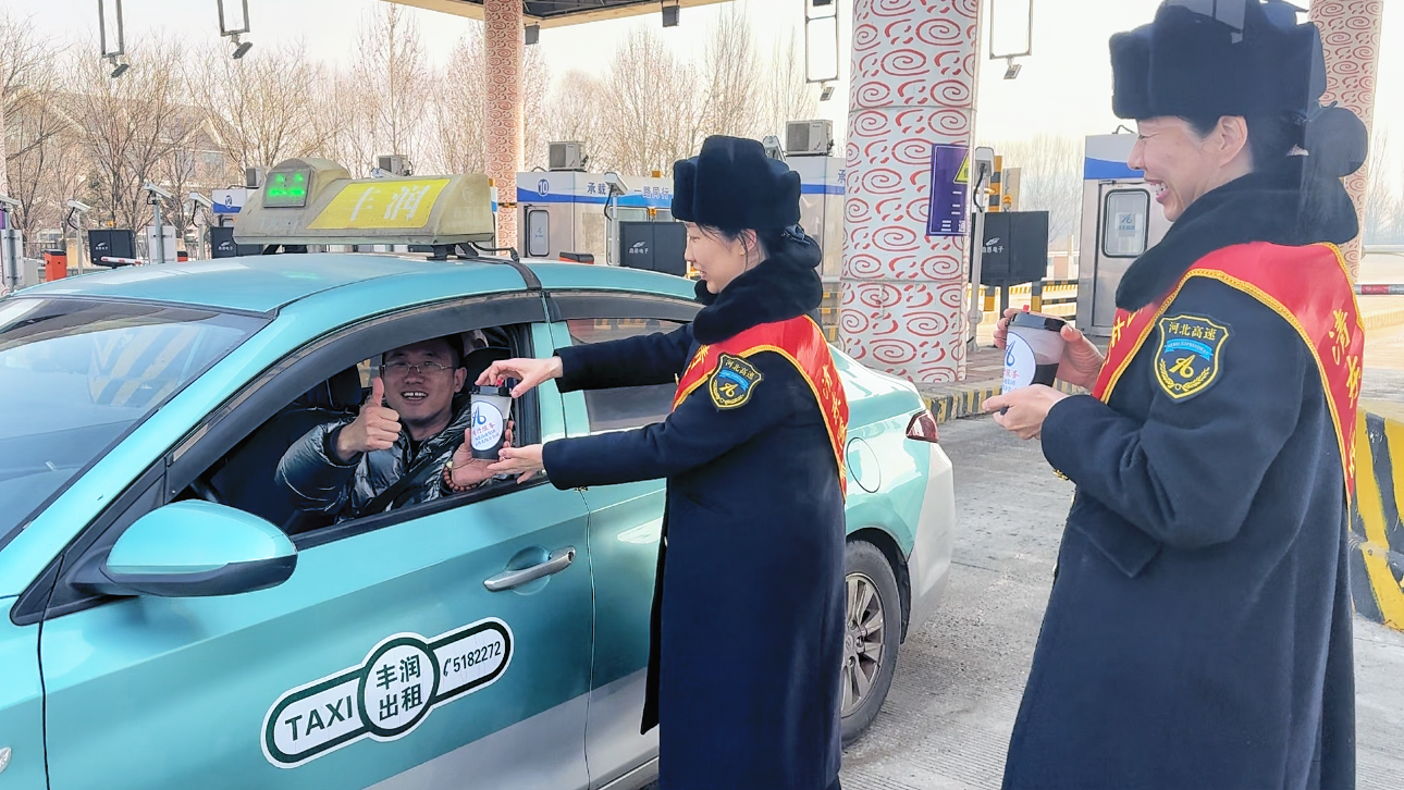 清东陵收费站在小年当天为过往司乘送上热气腾腾的姜茶,一句句节日祝福、一声声安全叮嘱,温暖旅途、驱散疲惫。工作人员同步开展冬季行车安全宣传,提供路况咨询、路线指引、景区介绍等便民服务,将暖心服务与安全保障有机结合,让春运归途更有温度。
