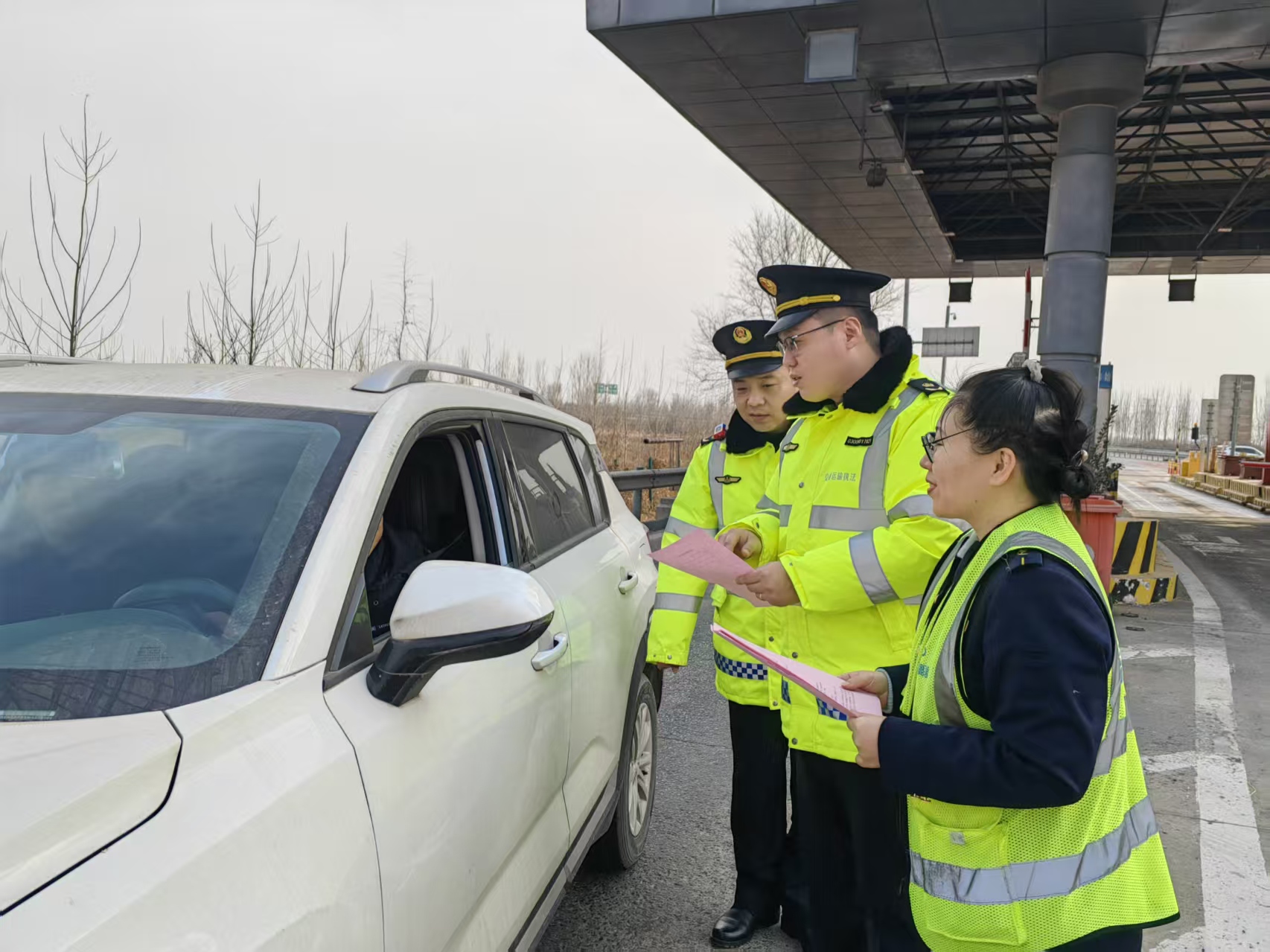 为守护广大司乘人员返乡团圆路,2月11日,沙圪塔收费站与路政大名大队联动,向过往司乘宣传春运交通安全知识。