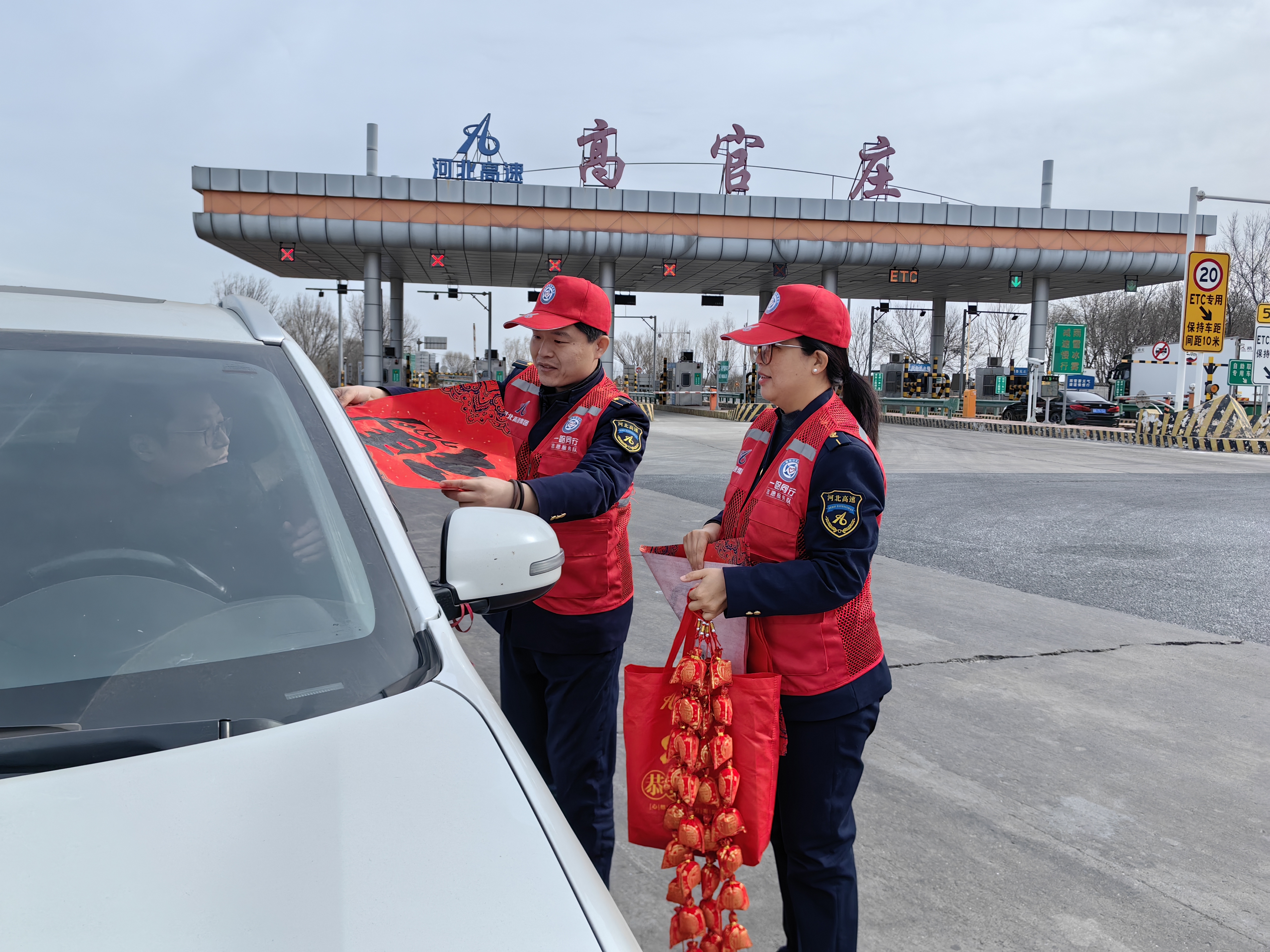 新春佳节将至,为让过往司乘在归家途中感受到浓浓的年味与温暖,高官庄收费站组织“一路同行”志愿服务队开展“新春送祝福”志愿服务活动,用贴心服务为司乘平安返乡保驾护航。