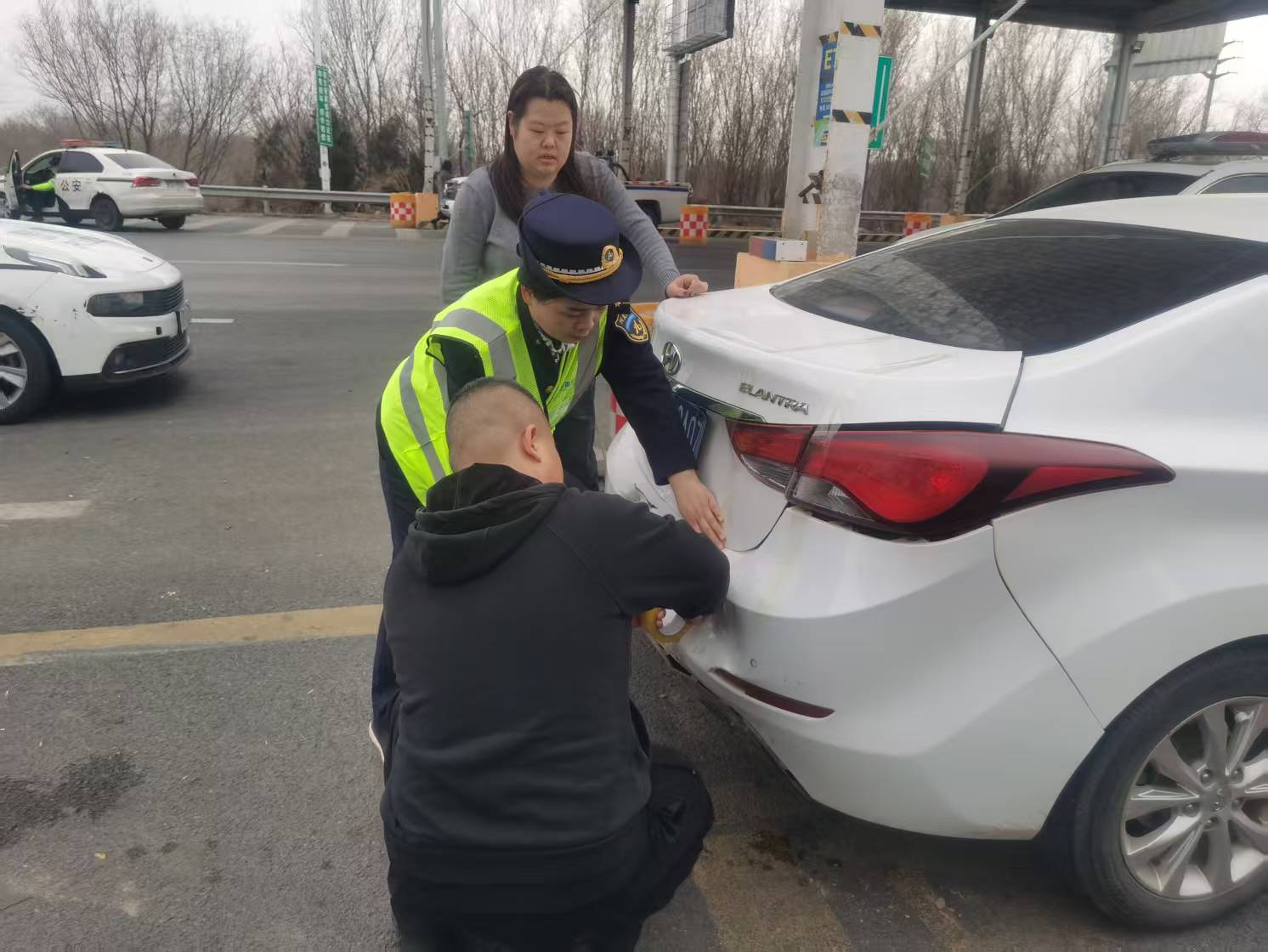 中午12点左右,张艳香发现一辆白色轿车停放在收费广场内,车主正在车前四处查看,感觉司机一定是遇到了什么困难,赶紧上前询问情况。经询问得知,车辆因事故导致后备箱无法闭合,已无法正常安全行驶。 张艳香立即返回站区取来胶带等工具,与车主一同对后备箱进行临时固定处理,及时排除行车安全隐患。处理完毕后,她还细心叮嘱车主务必就近前往正规修理厂彻底检修,确保后续行程安全。车主对张艳香的及时、贴心帮助连连道谢。