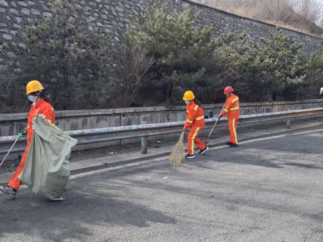 为确保高速公路安全畅通、路域环境整洁有序,养护队员们全副武装、整装出发,加大路面巡查频次与保洁力度,重点对主线、匝道、服务区出入口等易抛洒路段开展拉网式清理。大家手持工具,弯腰清捡路面垃圾、快速处置散落杂物、及时消除行车隐患,不放过一处死角、不遗留一处风险。