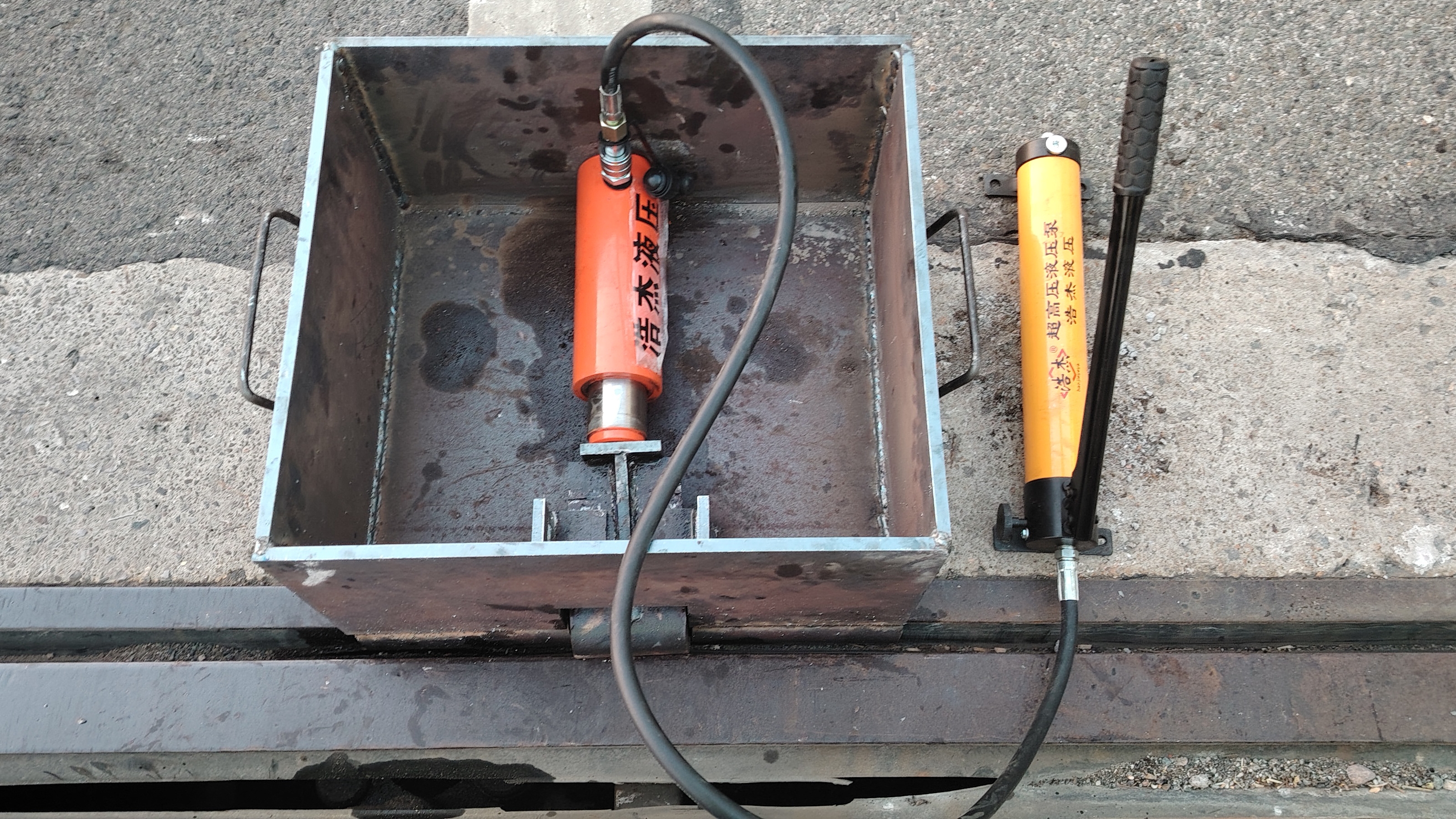 该创新装置集成高精度液压千斤顶、高强度锰钢推杆与轻便固定箱体于一体,精准直击伸缩缝型钢因腐蚀老化、长期受力导致的卡滞顽疾。通过与型钢精密贴合、可控液压精准输出,对锈死部位施加同步反向精准作用力,高效破除部件间的腐蚀粘连,快速恢复型钢自由伸缩滑动功能,让“僵死”的伸缩缝重新恢复“活力”。