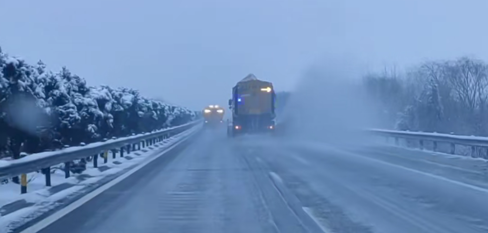 3月1日,分公司提前对特大桥、京九下穿等易积雪、易结冰的重点路段,预撒融雪剂,筑牢防冻屏障。傍晚大雪降临后,巡查人员全程实时监测路面雪情与地表温度,严格执行“人歇车不歇”轮班机制,分批次、多频次开展融雪剂撒布作业,严防路面结冰。3月2日凌晨,针对部分路段积雪增厚问题,迅速开展推雪清雪作业,全力铲除路面积雪。截至目前,除雪作业人员已连续奋战一昼夜,完成3遍融雪剂撒布、1遍推雪作业,双向四车道已恢复正常通行条件。