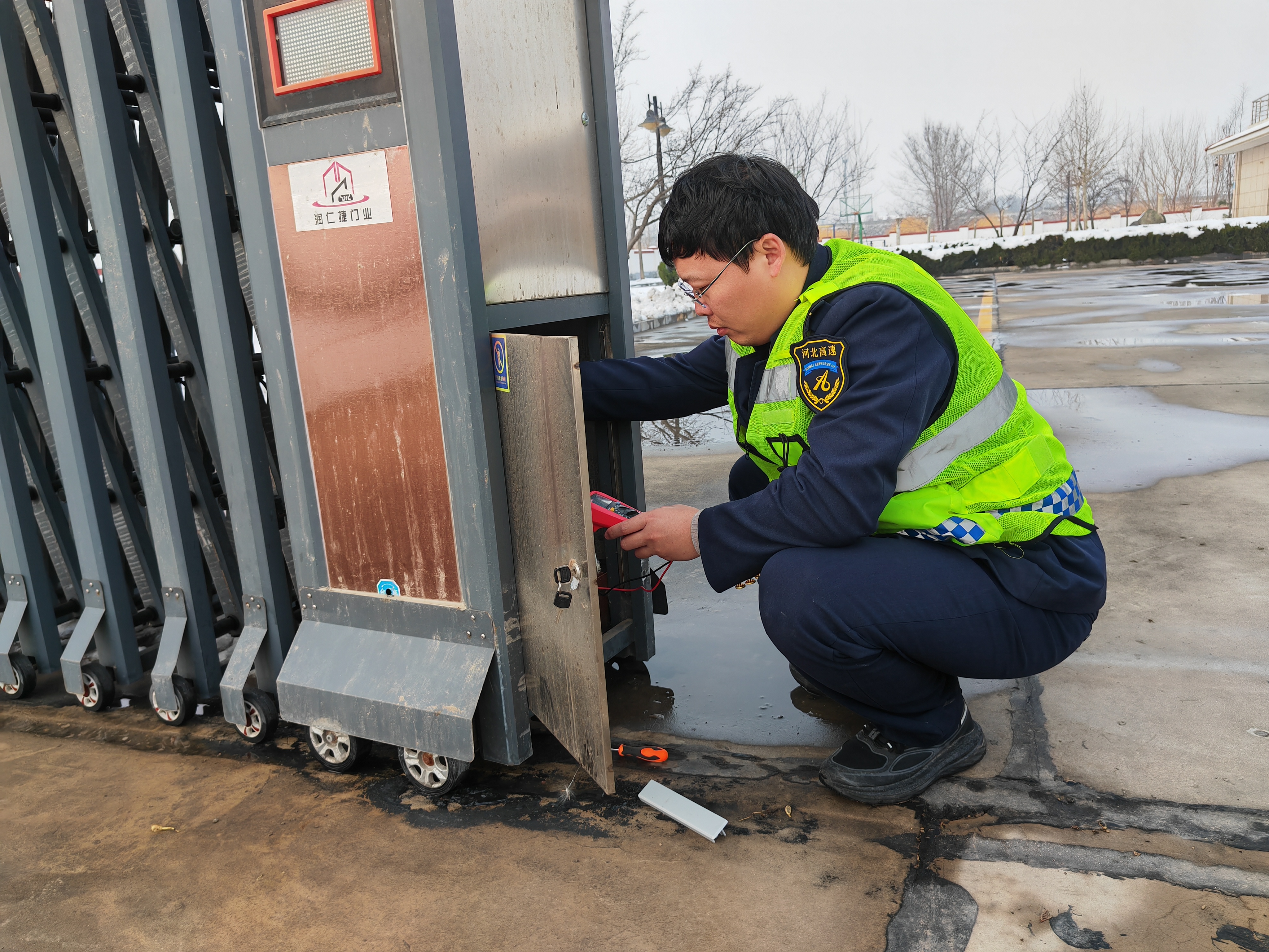 3月2日,冀州南收费站值班人员在安全巡查时,发现收费站大门开关失灵,给职工正常通行带来不便,也存在一定安全隐患。面对突发情况,收费站迅速响应。