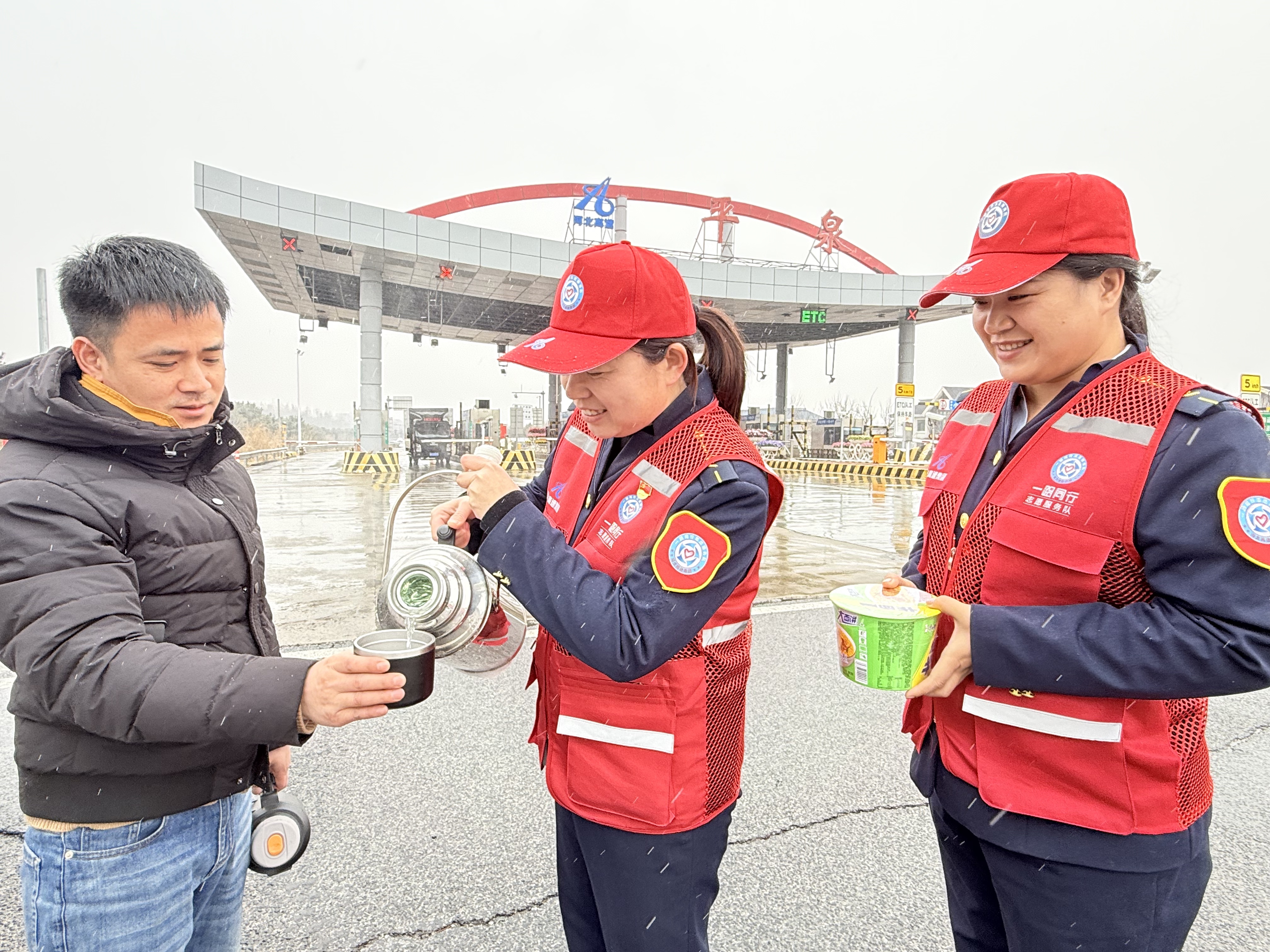 为确保除雪保畅高效推进,分公司提前谋划备战,依据气象预警提前研判降雪态势,召开专题会议明确职责,统筹调配除雪机械、备足融雪物资,并对桥梁、隧道出入口等重点路段开展前置排查。同时,深化“路警一体化”联勤联动机制,实现雪情路况实时共享、联合调度,采用“机械清扫+融雪剂精准撒布”模式,聚焦易结冰路段靶向作业,科学调控融雪剂撒布用量,切实做到高效除雪、节约耗材。此外,通过抖音直播、交通广播等多渠道发布路况提示,本次降雪共开启恶劣天气路况直播3场,累计直播时长8小时,观看人次31万,服务司乘9671次,各收费站及时清理积雪、便民服务台提供贴心服务,全方位保障司乘出行。