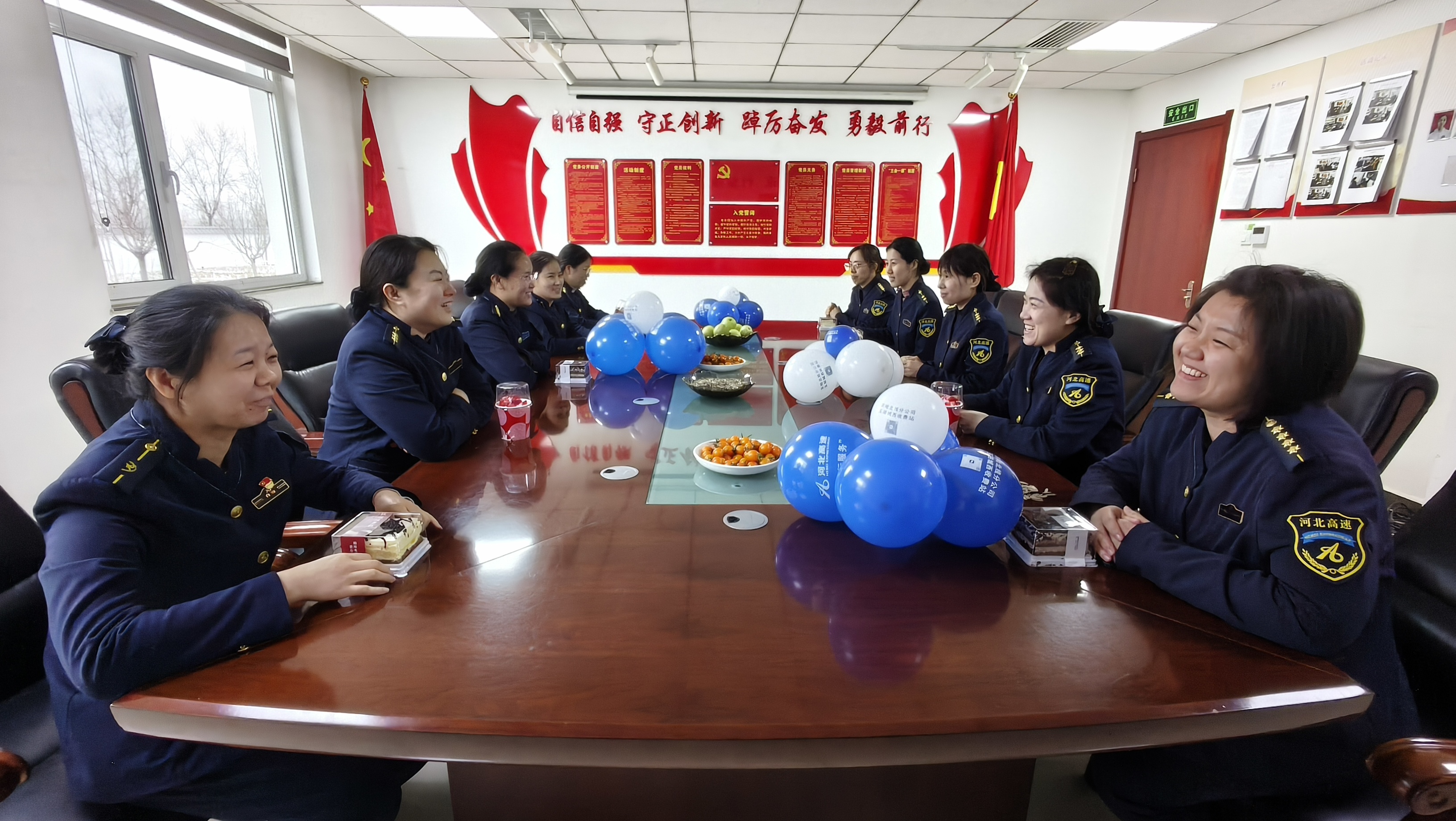 会议室里,玉田城西收费站工会分会为女职工们精心准备了香甜的蛋糕和新鲜的水果。大家围坐在一起,品尝着美味的糕点,畅谈工作、生活中的感悟与收获。现场气氛轻松愉快,欢声笑语不断。