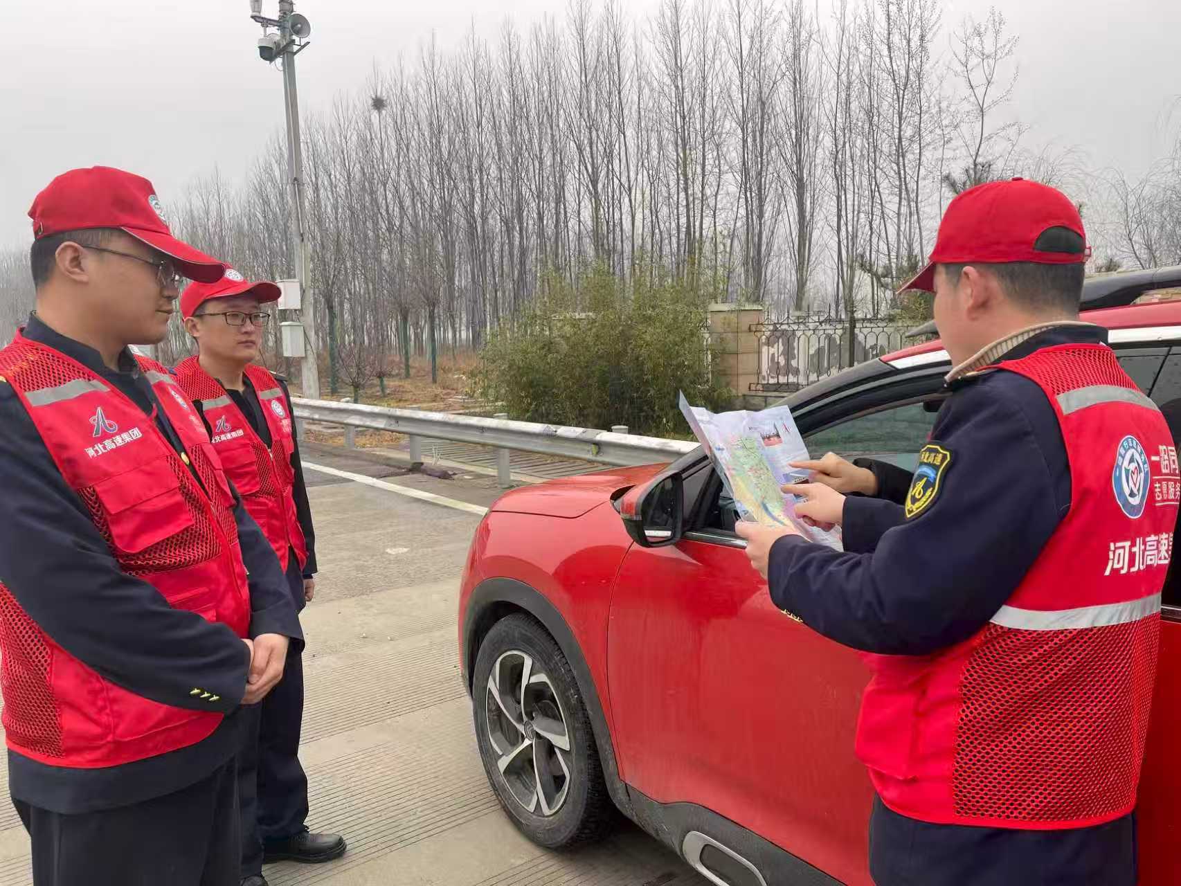 3月8日,一辆小轿车停靠在衡水西收费站出口广场,司机下车向岗亭值守人员询问衡水博物馆的位置。收费员见状立即上报班长为司机讲解行驶路线。