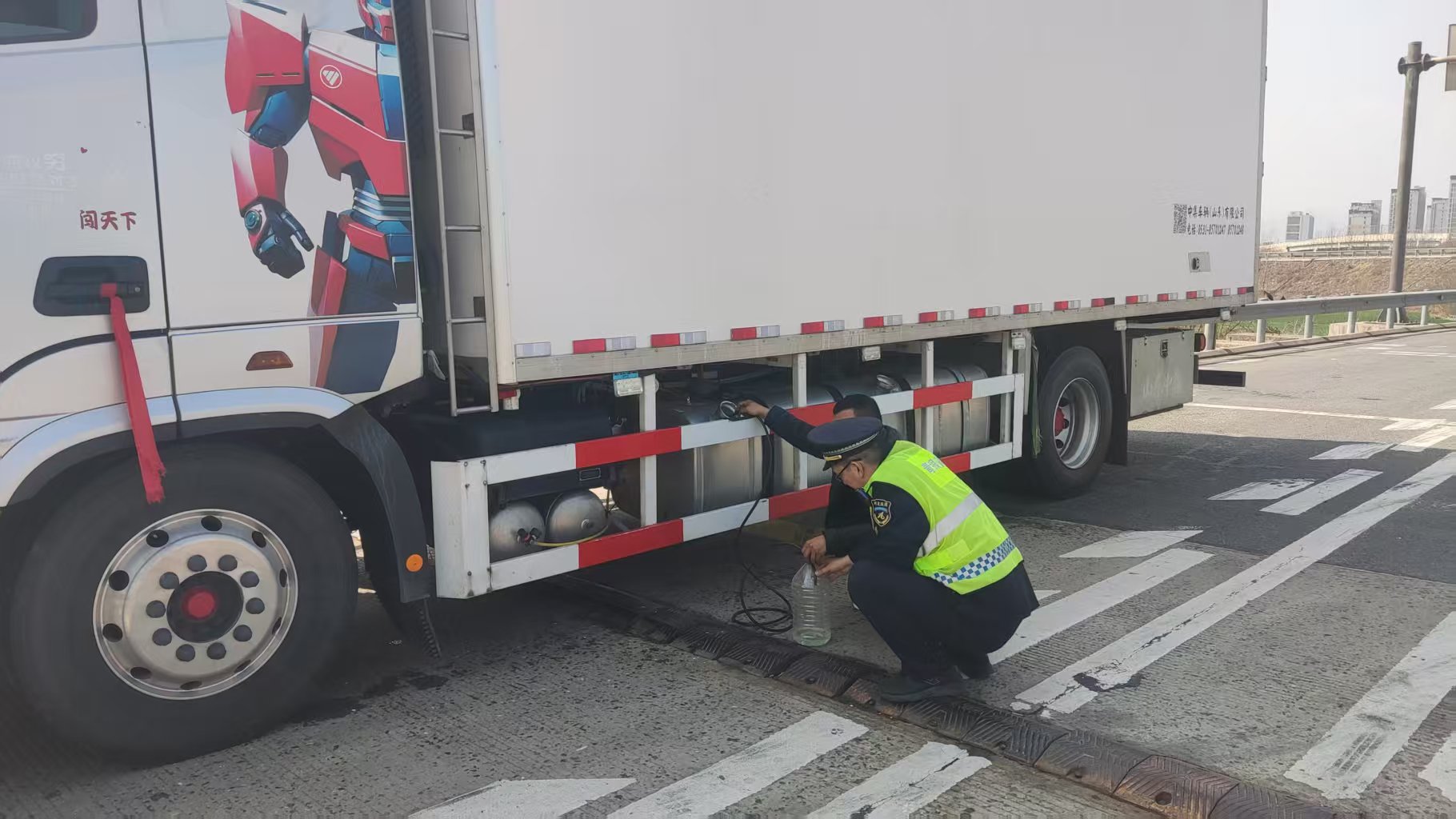 收费站工作人员立即开启紧急救助模式,在车后设置反光锥警示,同步疏导后方车流,在确保安全前提下,利用软管等简易工具手动抽取燃油,成功为货车完成临时补给。补给完成后,工作人员主动告知驾驶员附近加油站的具体位置和最优路线,确保其顺利抵达加油。