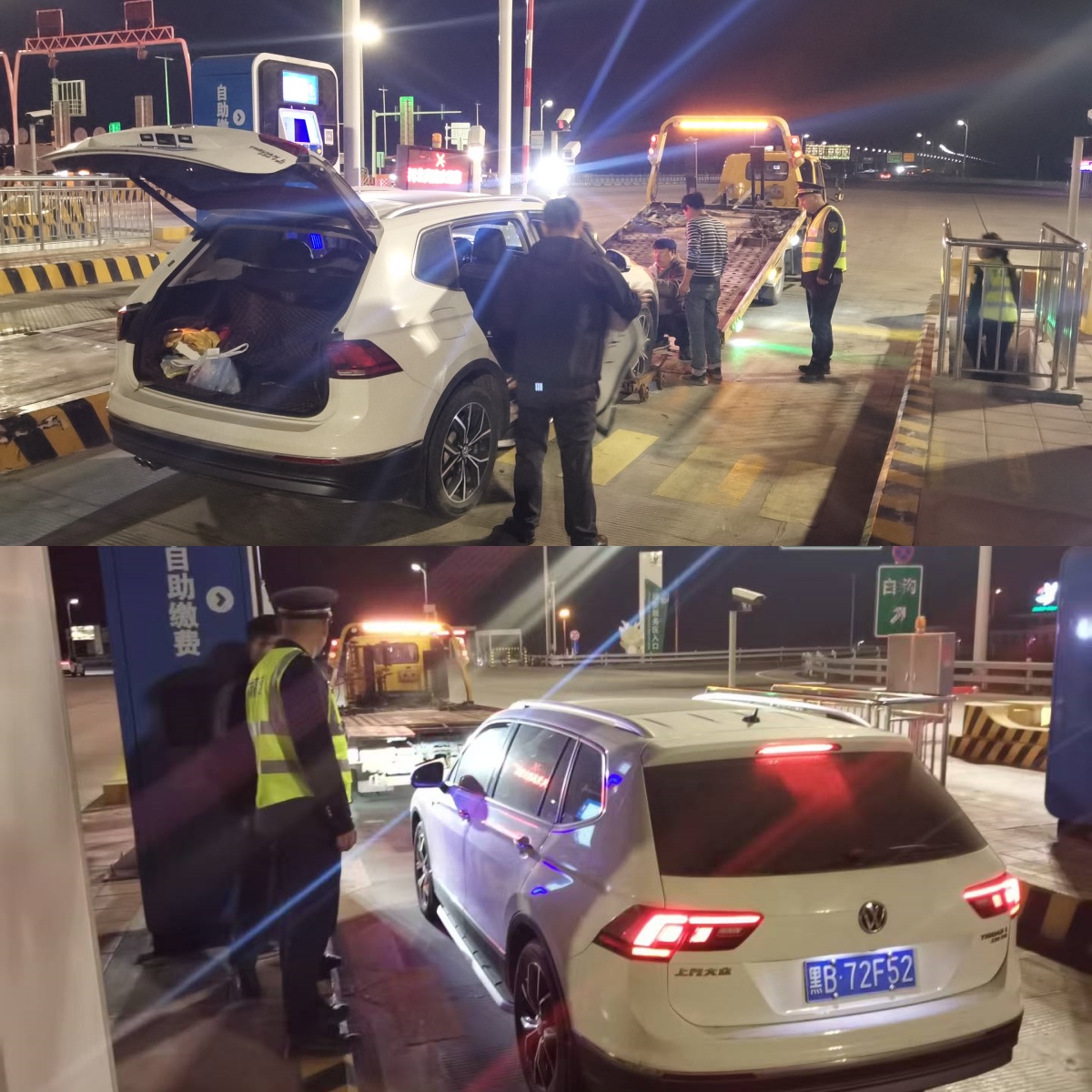 关闭车道后,工作人员并未停下服务的脚步,而是主动伸出援手,帮助司机联系专业救援拖车。他们详细且准确地告知救援车辆行驶路线以及收费站具体位置,并全程陪伴司机一同等候。在等待过程中,工作人员始终保持耐心,认真解答司机提出的每一个疑问,让司机在焦急中感受到温暖与安心。直至救援拖车抵达现场,工作人员又协助救援人员将故障车辆安全拖离。