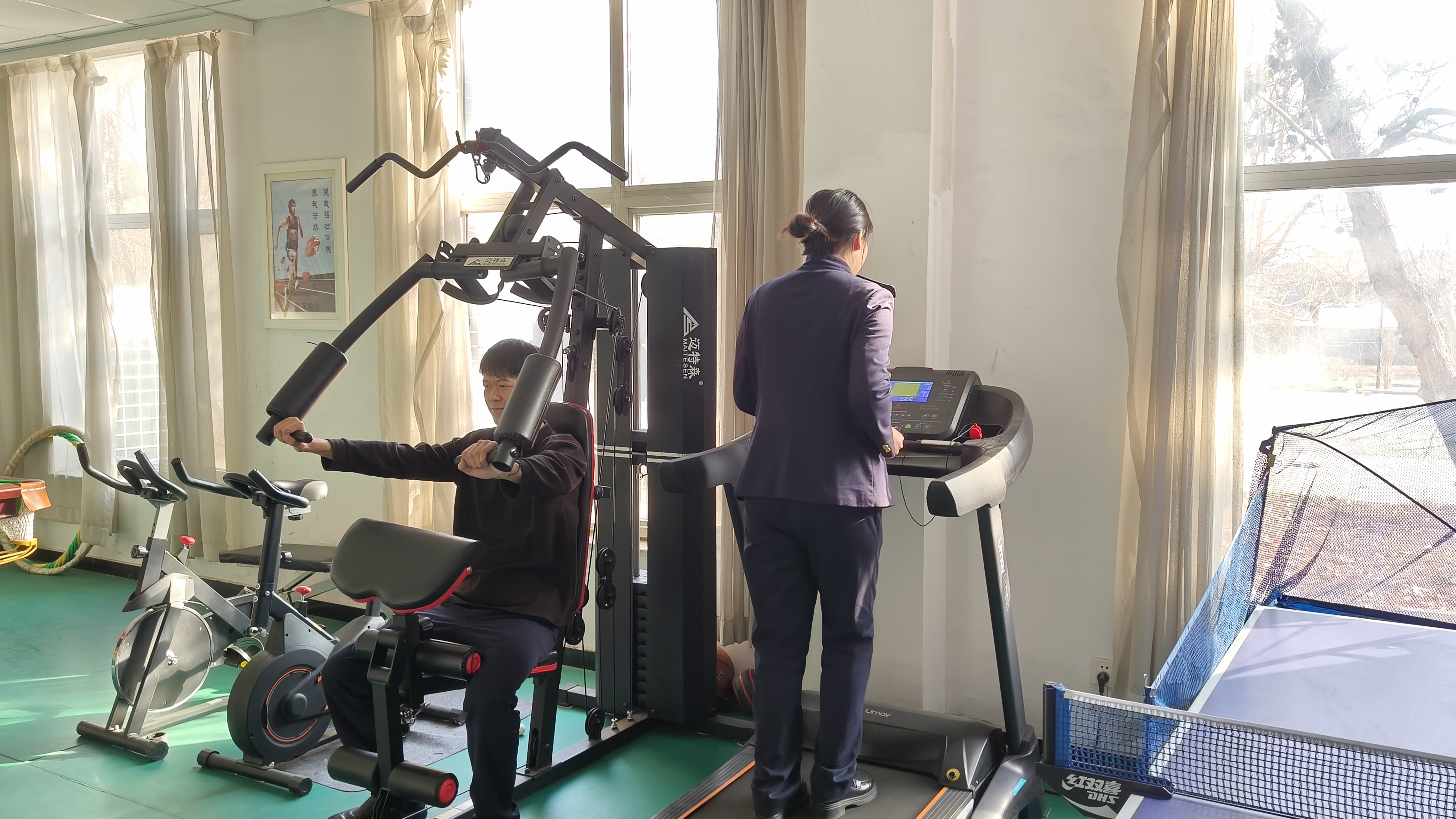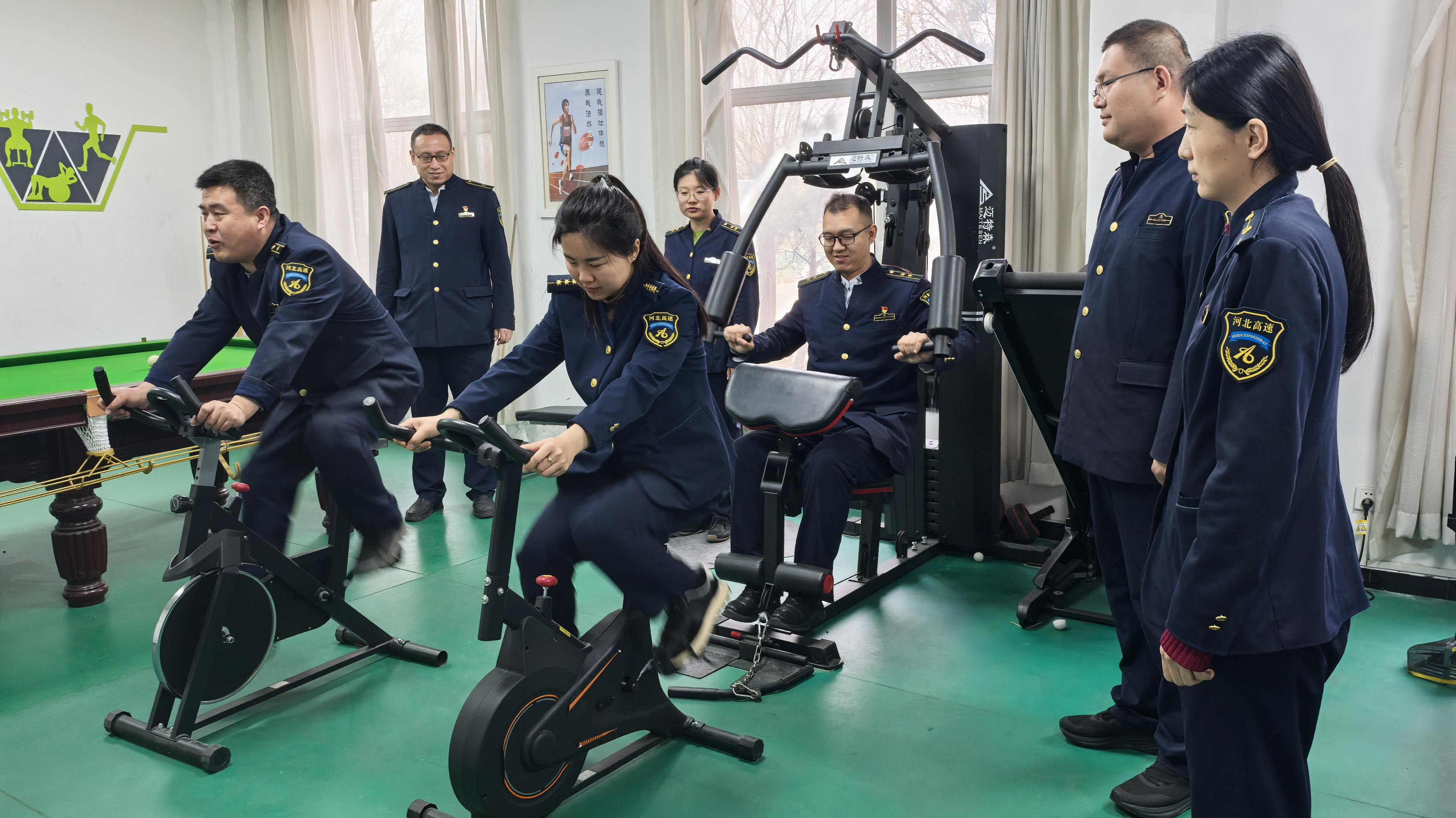 活动现场,职工们热情高涨、活力四射。在职工活动室,大家根据自身兴趣和体能,自主选择健身项目:跑步机上,职工们稳步前行,挥洒汗水释放压力;动感单车上,大家奋力蹬踏,在节奏中迸发青春活力;乒乓球桌旁,发球、接球、扣杀,每一个动作都尽显专注与拼搏;综合训练器前,职工们规范动作、科学锻炼,在力量训练中锤炼意志。现场氛围热烈而融洽,大家在运动中相互鼓励、切磋交流,不仅锻炼了身体,更增进了同事间的情谊。