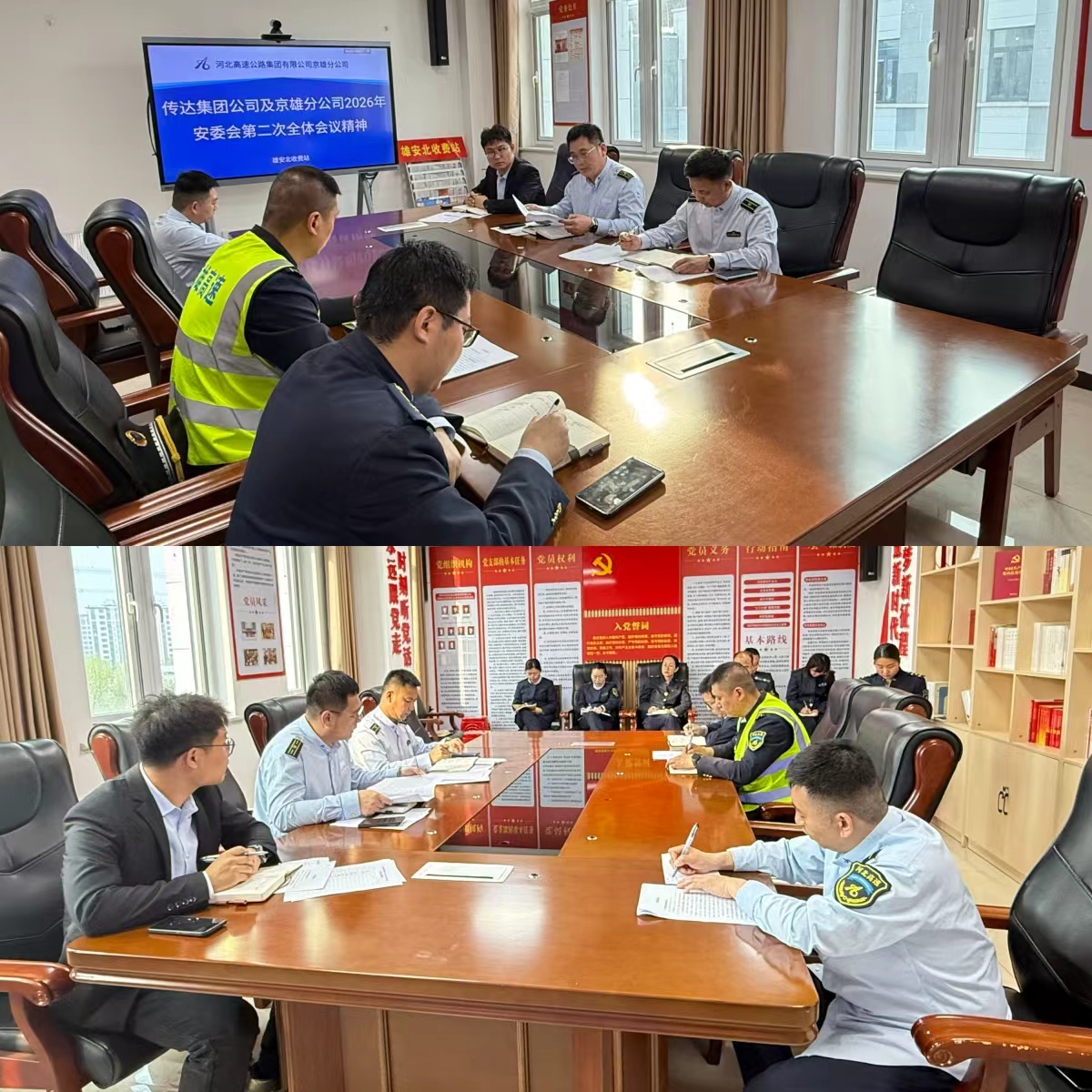 4月15日,雄安北收费站组织召开安全生产专题会议,迅速传达落实集团公司及分公司2026年安委会第二次全体会议精神。会议立足当前安全生产形势,结合即将到来的“五一”假期保障任务和春季季节性风险特点,对下一阶段站口安全保畅工作进行了再动员、再部署、再落实,全力确保安全生产形势持续稳定。
