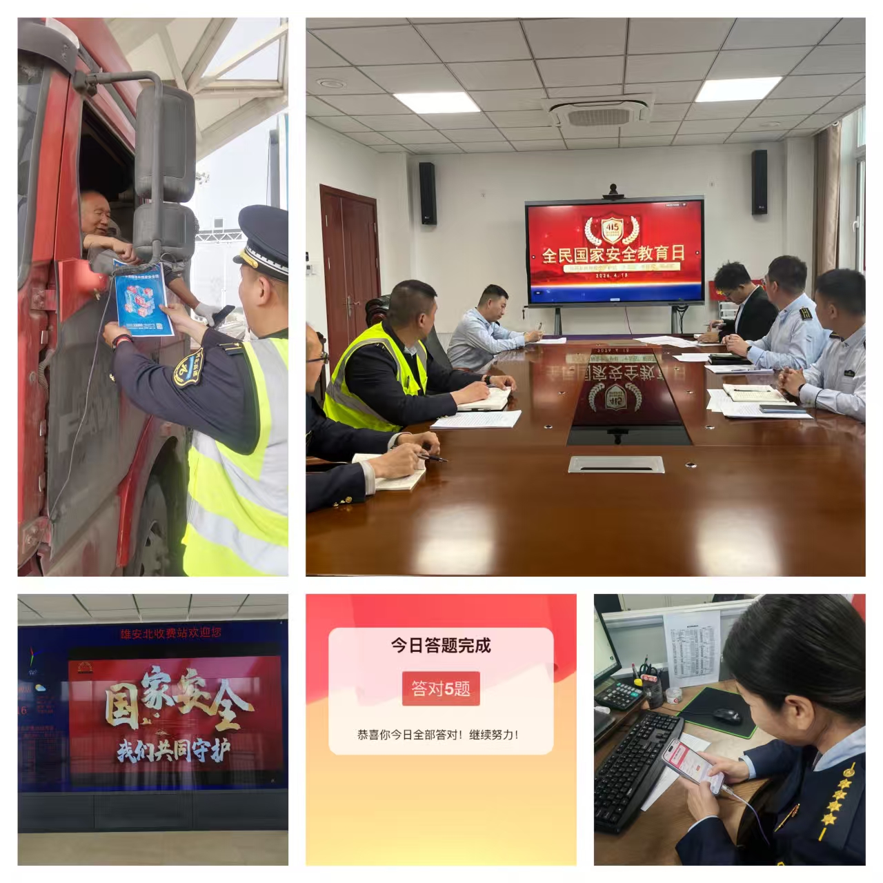 国家安全,重于泰山;人人有责,处处留心。为深入学习宣传贯彻习近平法治思想和总体国家安全观,全面提升全体职工及过往群众的国家安全意识,在第十一个全民国家安全教育日,雄安北收费站围绕“统筹发展和安全,护航‘十五五’新征程”主题,打出了一套“组合拳”,让国家安全教育既“走新”又“走心”。